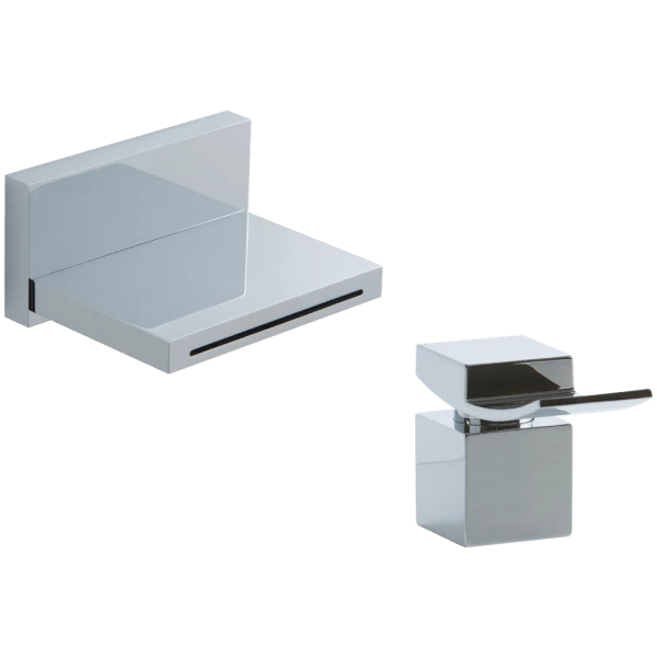 F202-4 – Quarto Square Wall Mounted Waterfall Tub Filler With Deck Mounted Lever Control