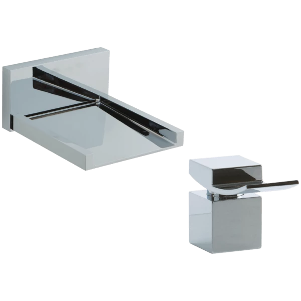 F202ALT-4 – Quarto Square Open Spout Wall Mounted Waterfall Tub Filler With Deck Mounted Lever Control