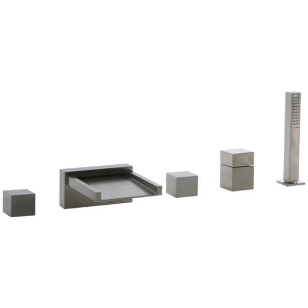 F202ALT-5 – Quarto Square 5-Hole Open Spout Deck Mounted Tub Filler With Cube Controls