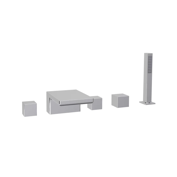 F402-6 – Milan Square 5-Hole Deck Mounted Tub Filler With Hand Shower