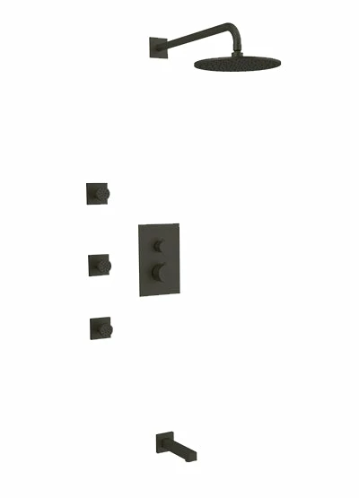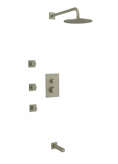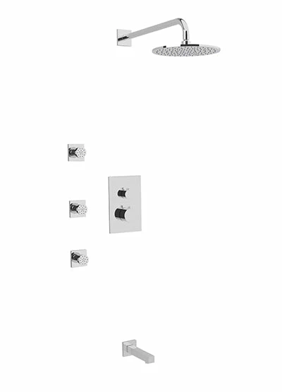 PS111 – Square Thermostatic Shower Trim Kit With Wall Mount Shower Head, Body Jets, Tub Filler
