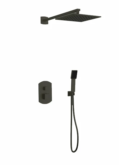 PS140 – Round Thermostatic Shower Trim Kit With Wall Mount Shower Head, Hand Held Shower