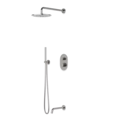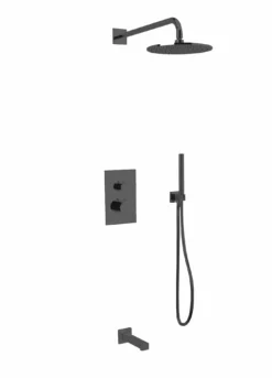 PS120 – Round Thermostatic Shower Trim Kit With Wall Mount Shower Head, Hand Held Shower, Tub Filler