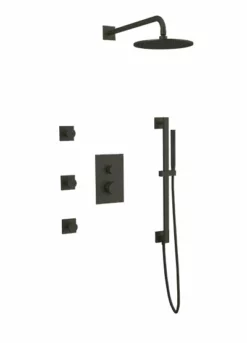 PS114 – Transitional Thermostatic Shower Trim Kit With Wall Mount Shower Head, Body Jets, Tub Filler